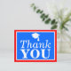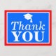 Envie este Obrigado de Boné Azul Branco Vermelho Seu Cartão-postal a todos que apoiaram e encorajaram sua carreira escolar. Ele apresenta um boné formando e uma fonte clássica em cores vermelhas, brancas e azuis. Escreva sua carta pessoal nas costas.