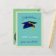 Boné de formatura azul em fundo sábio e quadro branco - cartão de parabéns moderno na moda em francês para graduações do ensino médio - fácil personalizar este cartão postal agora com um nome. Você pode adicionar mais texto/foto, etc.