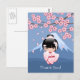Cartão Postal Boneca Kokeshi de Kimono Branco - Fofa Geisha Obri