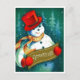 Cartão Postal Boneco de neve com o chapéu vermelho do cilindro,