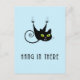 Cartaz humorístico mostra um gato preto legal pendurado com olhos verdes e uma cauda enrolada. O texto abaixo dizia "Aguente aí" em uma fonte moderna de boné de cheio, artes e artesanatos. O fundo é azul. Design bonito, engraçado, legal e assustador para dar motivação e encorajamento a amigos, parentes, colegas de trabalho, e, claro, amantes de gatos e gatinhos e donos de animais de estimação. Miau!