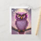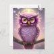 Cartão Postal Bonita Coruja de Fantasia Rosa e Roxa