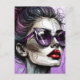 Linda senhora com óculos de sol roxos e batom vermelho, Arte Ai com linhas degenerativas abstrato com pão bagunçado.
