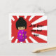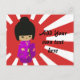 Cartão Postal Bonita rosa Kawaii Kokeshi Doll ao sol da ascensão