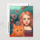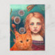 CARTÃO POSTAL bonito DE MENINA E GINGER CAT