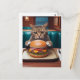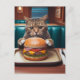 Cartão Postal Bonito gato num jantar com cheeseburger