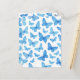 Motif de borboleta azul com asas arejadas e espalhadas sobre o pano de fundo escuro; padrão vibrante e inspirado na natureza ideal para primavera