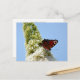 Uma borboleta europeia de pavão (Aglais io) alimenta-se de uma planta branca de budleia num jardim inglês.