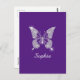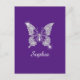 Cartão Postal Borboleta Diamante Branco, Nome do Script, Roxo Re