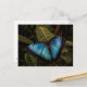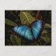 A borboleta Blue Morpho mostra suas brilhantes asas azuis ( 5 - 8 polegadas de extensão) enquanto repousa na folhagem na terra maravilhosa da borboleta. Foto de Ruth Jolly.