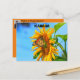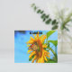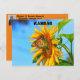 Uma fotografia de uma Borboleta Monarca fechada sobre um Girassol com céu azul brilhante e colorido em Hutchinson Kansas USA. Está num cartão POSTE.