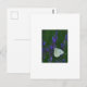 Cartão-postal com fotografia de borboleta branca em flor de lavanda roxa