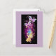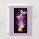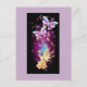 Cartão Postal Borboleta Roxa Claro e Azul com Rosa Dourada