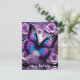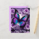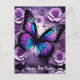 Cartão Postal Borboleta Roxa Floral de Aniversário