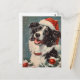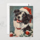 Uma cena emocionante se desdobra na frente deste cartão festivo de Natal, com um charmoso "Border Collie" enfeitado com um chapéu alegre de Papai Noel. O amigo furioso olha com olhos brilhantes e cheios de alma, irradiando a alegria e antecipação da época de férias. O chapéu de Papai Noel tocou aquelas orelhas inteligentes adiciona um toque extra de alegria a esta deliciosa mesa de Natal canino.