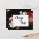Cartão Postal Borgonha Elegante e Flores Rosa Alteram a Data
