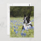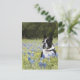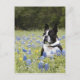 Cartão Postal Boston Terrier sentada num campo de Blue Bonnets