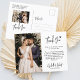 Orçamento, Elegante Script Moderno Barato Foto Cardíaco Barato Obrigado Cartão-Postal em Preto e Branco. Na moda, modelo de cartão de casamento minimalista com 1 foto na frente e 1 foto no verso. Texto "Obrigado" em tipografia escrita à mão ou escrita caligráfica com coração de amor. É fácil adicionar o seu nome e obrigado à sua mensagem. Se precisar de ajuda ou item correspondente, entre em contato com o designer!
