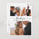 Casamento De Colagem Fotográfica Moderno Elegante 3 Do Orçamento Obrigado Postard. Modelo de cartões de agradecimentos de casamento minimalista com três (3) fotos na frente e uma (1) foto no verso. Com o texto "Obrigado" em uma escrita de fontes de letras suaves tipografia com letras maiúsculas e minúsculas em preto sobre fundo branco. Um pequeno motivo cardíaco entre os nomes. Personalize o nome personalizado e a mensagem do obrigado. Se preferir escrever manualmente a sua nota, basta eliminar o texto de amostra para obter mais espaço. Se precisar de ajuda ou item correspondente, entre em contato comigo!