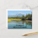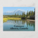 Beautiful calm turquoise waters of the Bow River in Canmore Canada with the majestic Canadian Rockies in the distance.