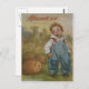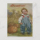 Cartão Postal Boy Jack O Lanterna Pumpkin Haystack Chão Cheia