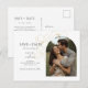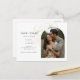 Esse casamento moderno minimalista salva a data dos cartões postais... com uma foto de casal do boho, delicada imitação de elementos florais de ouro e um conjunto contemporâneo de fontes em preto-jato. O detalhe da flor é repetido no fundo. Este design é contemporâneo e chique. Perfeito para o na moda e casal elegante.