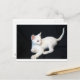 Um gato branco brincalhão com fundo preto fornece uma imagem divertida neutra em termos de gênero do excelente para colocar no seu produto favorito.