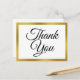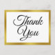 'Obrigado' aparece em um roteiro preto na frente, em um fundo branco, com uma falsa borda dourada.