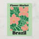 Celebrate the exotic and breathtaking flora of South America with this striking Brazil Flower Market design. This modern illustration features a lush arrangement of oversized peach-colored orchids with golden centers, winding through rhythmic, deep green tropical foliage.