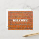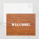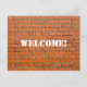 Vista aproximada da parede do tijolo. Apenas tijolo, algumas filas de tijolos laranja. Eles enfatizam a força e a confiabilidade. Você pode alterar o texto do modelo Welcome! ou excluí-lo
