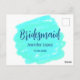 Cartão Postal Bridesmaid azul verde aquarela adiciona nome data