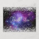 Cartão Postal Brilhante Glitter Prateado Roxo Celestial Obrigado