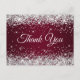 Cartão Postal Brilhante Prata Brilho Borgonha Obrigado