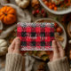 Cartão Postal Brilhante Prata Lantejoulas Vermelho Xadrez Americ