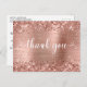 Cartão Postal Brilhante Rosa Dourado Sweet 16 Corações Obrigada