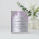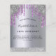Um convite moderno, na moda e glamouroso para a 50ª festa de aniversário (ou qualquer idade) da mulher. Um fundo metálico roxo e falso prateado, com pingado falso, pingado de prata. O nome é escrito com um moderno script estilo escrito à mão preta. Personalize e adicione um nome, idade e detalhes de sua festa. Fundo: fundo falso prateado, design postal.