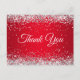 Crie seus próprios cartões de agradecimento elegantes. Brilho falso prateado brilhante com faíscas contra um fundo gradiente vermelho brilhante glamoroso. Todos os efeitos brilhantes e cintilantes prateados neste design feminino moderno são criados com gráficos digitais. Um design criativo para a celebração do seu aniversário de inverno. Prata e vermelho para as festas de fim de ano.