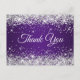 Cartão Postal Brilho Prateado Agradecimento de Aniversário Roxo
