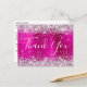 Cartão Postal Brilho Prateado Rosa Neon Lamê Festa de Bebê Obrig