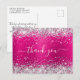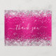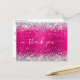 Cartão Postal Brilho Prateado Rosa Neon Lamê Obrigado Aniversári