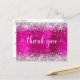 Cartão Postal Brilho Prateado Rosa Quente Sweet 16 Corações Obri