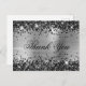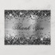 Crie seus próprios cartões-postais de agradecimento com letra de caligrafia fancy. Brilho preto falso brilhante contra um fundo espelho ombre prateado cinza glamoroso. Todo o brilho e efeitos cintilantes neste design feminino moderno são criados com gráficos digitais. Um design glamoroso feminino para a celebração do seu aniversário.