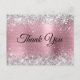 Cartão de agradecimento rosa e prata.