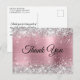 Cartão de agradecimento rosa e prata.