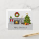 Cartão Postal Brindle Boston Terrier Em Uma Sala De Natal Festiv