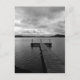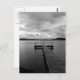 Vista ao longo de um cais de madeira em direção a uma costa do outro lado da baía.