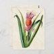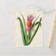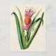 Cartão postal com uma imagem de colheita melhorada e limpa digitalmente de uma planta de bromélia com uma flor rosa num pano de fundo pergaminho. Ilustrada por Etienne Denisse para Flore d'Amerique, publicada em Paris em 1843.