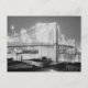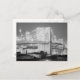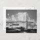 Esta é uma fotografia a preto e branco da ponte do Brooklyn à noite.