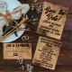 Negrito, masculino, e certamente único, este belo design de queima de nogueira com texto vintage funciona particularmente bem para casamentos rústicos e queda e casamentos no inverno.