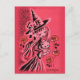 Cartão Postal Bruxa Bonita De Halloween Com Kitten